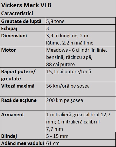 La startul războiului, Vickers Mark VI B era tancul ușor standard al armatei britanice. Armamentul și blindajul îl făceau comparabil cu Panzer I (Germania) și CV 33/35 (Italia), dar atât. Nu suferea comparație cu ce aveau veja în arsenal sovieticii. Francezii nu mai aveau nici ei tancuri neechipate cu tunuri la acea oră.